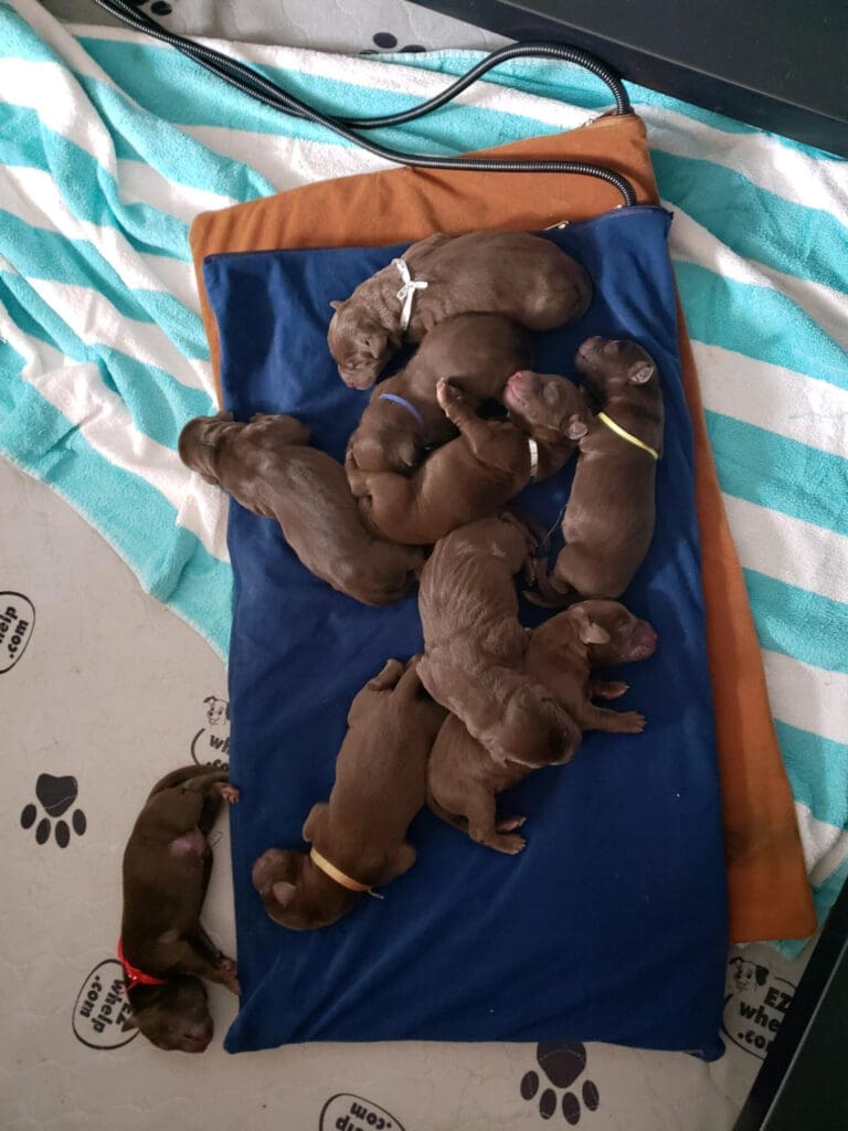 -Puppies are born in a sanitized whelping area within our living space